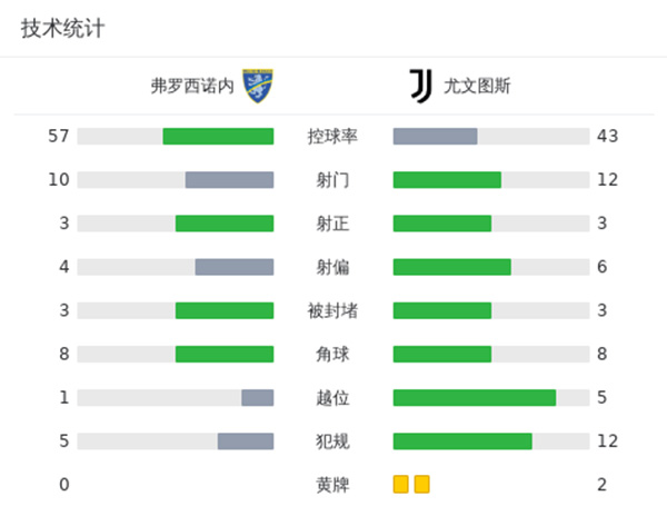 第12分钟,尤文打破僵局!图拉蒂后场出球不远科斯蒂奇抢断后直塞给伊尔迪兹左路在三人包夹下突破到禁区小角度爆射破门,弗洛西诺内0-1尤文。