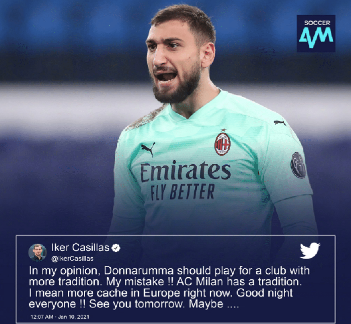 近日,卡西利亚斯表示:【我认为,多纳鲁马应该去一家更有底蕴的球队,这更有利于他的发展。当然,我没有对米兰不敬的意思,米兰是一家非常有底蕴的球队,但是目前欧洲赛场上还有比米兰更有底蕴的球队。】卡西的言论遭到了许多米兰球迷的不满,要比现在的成绩不好说,比起底蕴的话,米兰还真的不比任何球队差,放眼整个欧洲足坛,比底蕴,或许也只有皇马祖上比米兰富有一些,其他球队还真的比不上米兰。