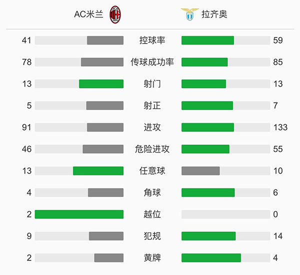 第16分钟,雷比奇禁区内射门后被帕特里奇放倒,裁判判罚点球,恰尔汗奥卢主罚点球命中,AC米兰2-0拉齐奥。