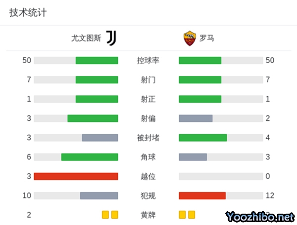 尤文0-0闷平罗马止两连胜 双方共2射正罗马开局3轮不胜