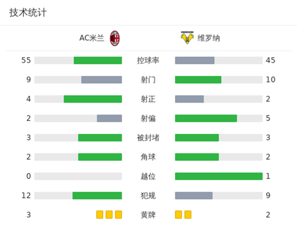 第8分钟,米兰取得领先!吉鲁中场反抢成功给到莱奥单刀机会杀入禁区推射破门,米兰1-0维罗纳。