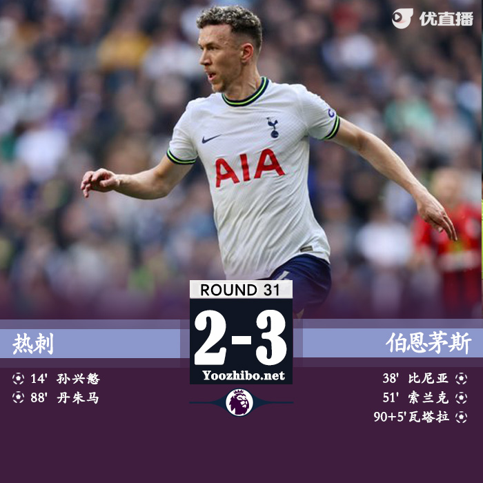 24直播网4月16日讯 北京时间4月15日22时15分,英超第31轮,热刺主场迎战伯恩茅斯。上半场,佩里西奇助攻孙兴慜破门,朗格莱伤退,比尼亚扳平比分。热刺半场1-1战平伯恩茅斯。下半场,索兰克打进一球,丹朱马扳平比分,瓦塔拉补时完成绝杀。最终热刺主场2-3不敌伯恩茅斯。此役战罢,热刺继续排名第五,暂时落后第四名3分。