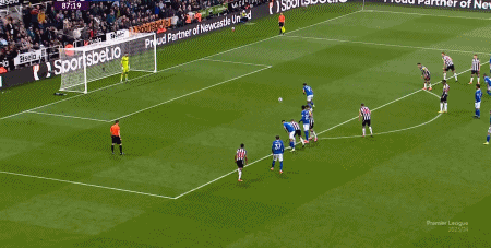 第15分钟,哈维-巴恩斯助攻,伊萨克内切破门,纽卡斯尔联1-0埃弗顿