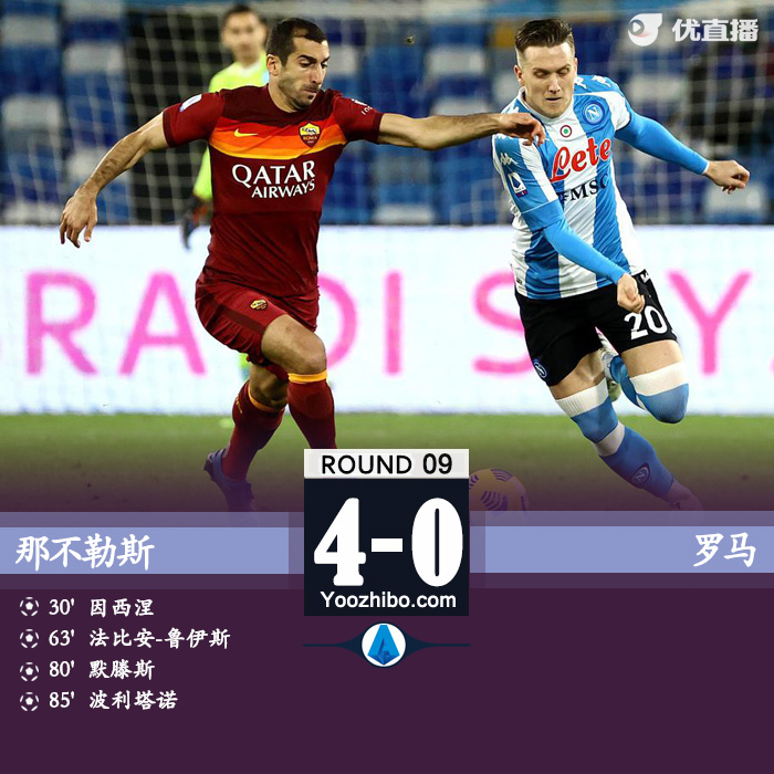 24直播网讯:北京时间11月30日03:45,意甲第9轮,那不勒斯vs罗马。上半时因西涅破门为那不勒斯先拔头筹。下半时因西涅达成传射,法比安-鲁伊斯、默滕斯、波利塔诺破门锁胜局。最终,那不勒斯4-0罗马。本场战罢,那不勒斯、罗马同积17分,分列5、6位。