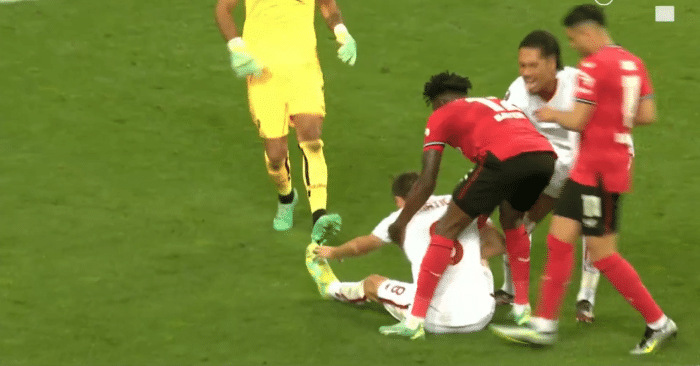 马蒂奇躺倒在勒沃库森禁区内,示意自己抽筋了,在他身边没有其他对手,就站着队友斯莫林。勒沃库森门将卢卡斯·赫拉迪克试图帮助马蒂奇伸展,中后卫埃德蒙·塔普索巴有更直接的方法,他试图把塞尔维亚铁腰拖到场外,但身高超过一米九的马蒂奇巍然不动,场边的穆帅为他鼓掌,点头表示赞许。
