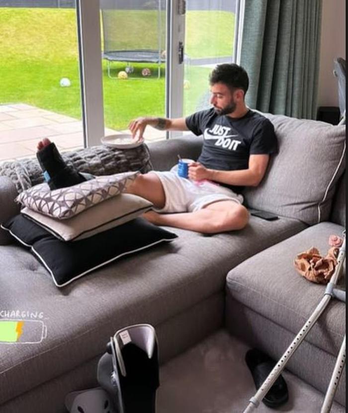 照片中B费坐在沙发上,右腿放在垫子上,脚踝已经戴上了护具,地板上还放着一只保护靴和一副拐杖。从这种阵仗来看,B费恐怕不大可能在周四晚对热刺的比赛中出场。如果这样的话,这将是葡萄牙中场在2020年加盟以来的首次因伤缺阵,此前他从未因为受伤缺席过任何的比赛。