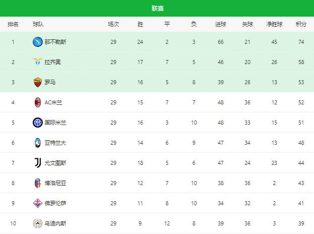 意甲的那不勒斯已经是一骑绝尘的状态,他们积74分高居第一,第二名是58分的拉齐奥,那不勒斯夺冠只是时间问题。本赛季他们的表现极其出色,欧冠也已经打进八强,多线冲击冠军,涌现出了奥斯梅恩等实力球员。