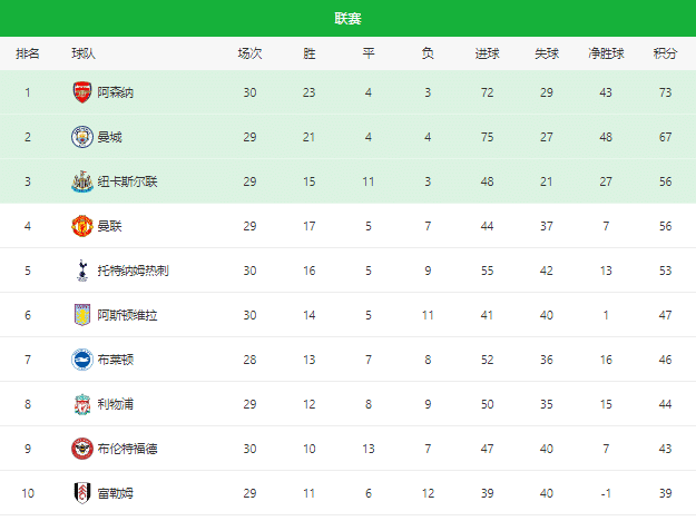 英超排名第一的是阿森纳,他们多赛一场的情况下领先曼城6分,接下来两队还有1场直接对决的比赛。阿森纳的位置并不稳,尤其是在2-2战平利物浦之后,一旦接下来顶不住压力,而曼城继续连胜的话,那么排名很有可能被反超。曼城需要做的除了继续赢球之外,还得希望双杀阿森纳,目前净胜球层面曼城也占据优势,一旦接下来的补赛和正面对决阿森纳都拿下胜利,曼城夺冠希望将大增。