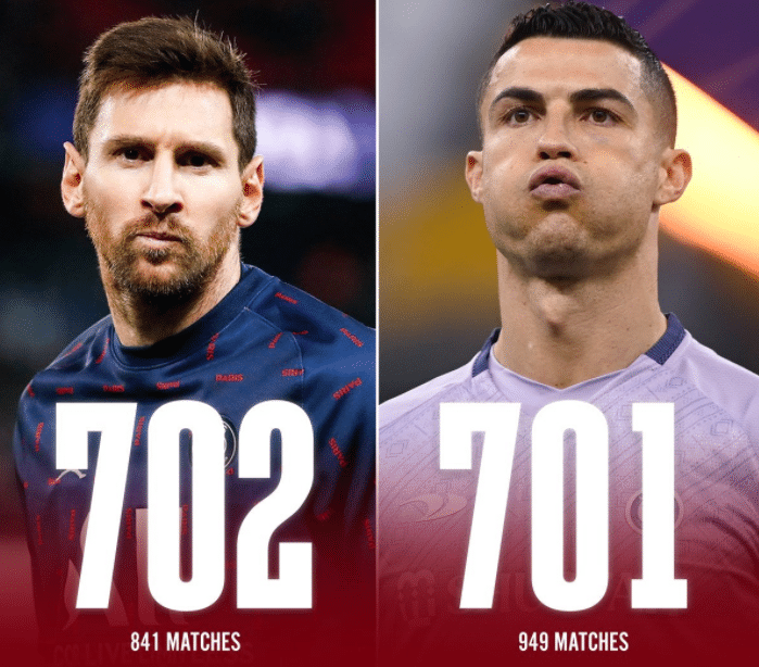 同时梅西在欧洲俱乐部生涯一共打入702球,超越C罗701球,这还是在梅西相比起C罗少踢108场比赛的情况下,在这一项数据上实现超越。