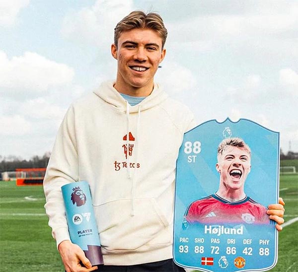 21岁的霍伊伦德受伤前连续7场比赛进球,包揽英超官方和曼联俱乐部的2月最佳球员奖项,状态相当出色。但训练中肌肉拉伤让他缺席了曼联过去的4场比赛。不过,丹麦队主帅卡斯珀·休尔曼德表示,本周与利物浦之战,曼联7300万英镑中锋将回归。霍伊伦德受伤时,曼联称他需要缺席两三周,现在已经过去三个星期。休尔曼德教练将霍伊伦德选入了与瑞士和法罗群岛的热身赛大名单,并且暗示从曼联得到消息,本周末「货轮」将重新起航。「拉斯穆斯(霍伊伦德)将在周日曼联对利物浦的比赛中出场,他已经出色地完成了恢复。」休尔曼德说,「这正是我们所期望的。我们正在与曼联联系,我已经和埃里克(滕哈格)谈过了,我们希望这能实现。但很明显,他必须打完这场比赛,而且必须没有任何不良反应才能做到这一点。」曼联尚未公布霍伊伦德的情况,但俱乐部已经官方宣布,万比萨卡和芒特恢复了完整的训练。5000万英镑右闸万比萨卡上一次参赛已经是1月14日2-2战平热刺的英超比赛,之后他遭遇腿伤高挂免战牌,已经缺阵9场。他的回归将缓解曼联边后卫荒,在卢克·肖受伤后,曼联没有左后卫,只能以中卫林德勒夫客串。万比萨卡一旦复出成为先发右后卫,葡萄牙国脚迪奥古·达洛可以踢左后卫,后者是球队少有的本赛季没有受伤的全勤球员,过去13场比赛连续首发。但有趣的是,在万比萨卡受伤前的最后一场比赛,英格兰边卫担任的是左后卫,而达洛踢右路。