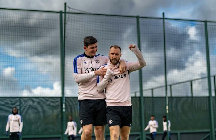 31岁的埃里克森1月份足总杯被安迪·卡罗尔铲伤脚踝韧带后,已经缺席了16场比赛。他本周正式加入了全队合练,曼联也首次公布了他在卡林顿与队友的训练照片,埃神和队长马奎尔谈笑风生,并有卡塞米罗并肩练习。