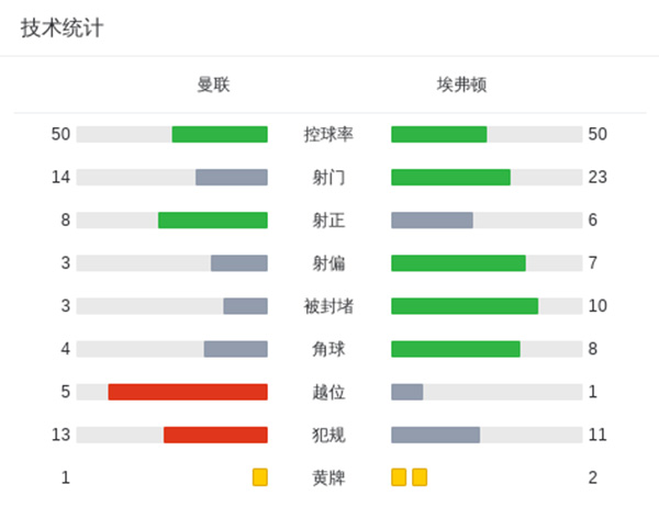 最终曼联2-0战胜埃弗顿。