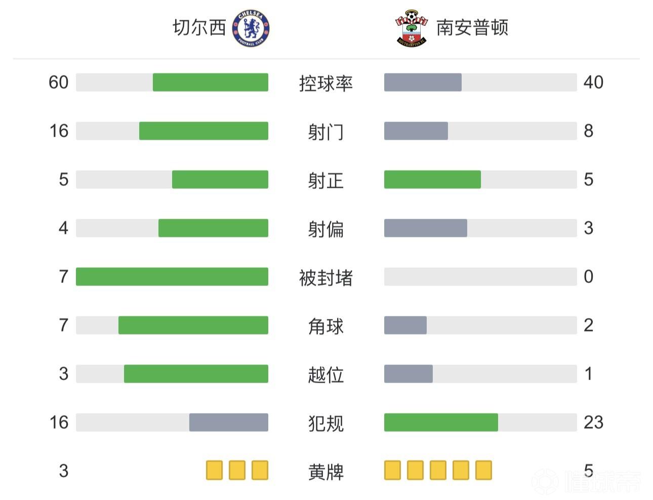 第45分钟,普劳斯任意球直接洞穿球门,南安普顿1-0切尔西。