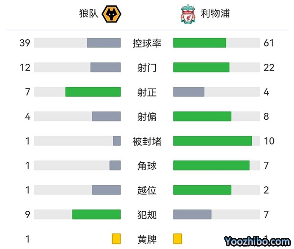 全场比赛结束,最终利物浦客场0-3狼队连续四轮不胜。