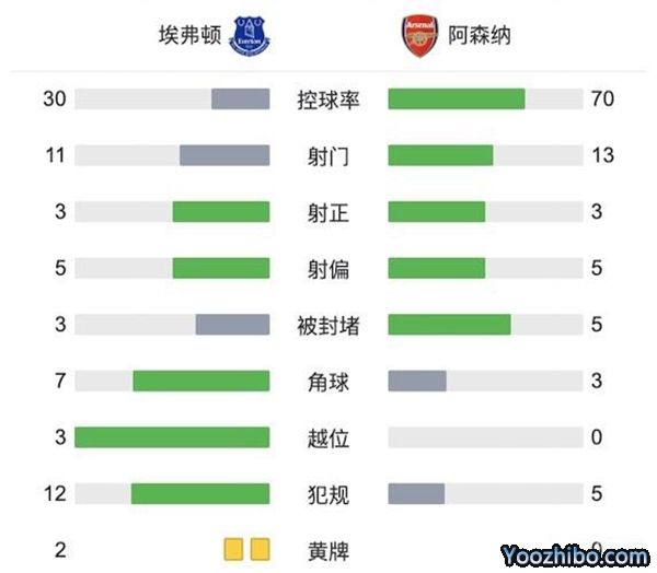 全场比赛结束,最终阿森纳客场0-1不敌埃弗顿。