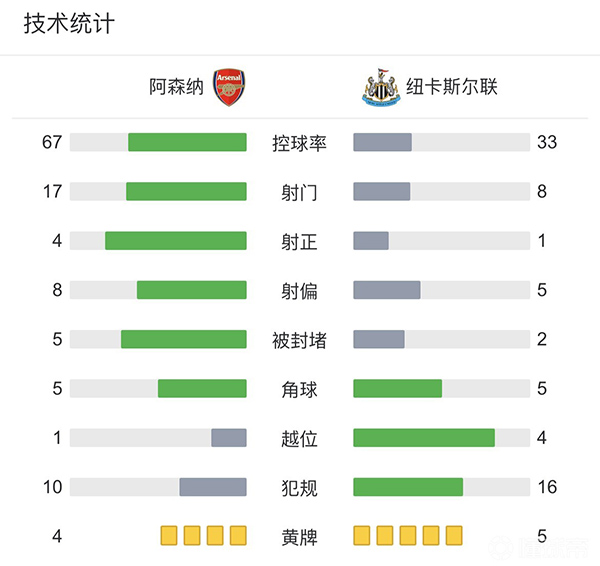阿森纳0-0纽卡 纽卡补时手球未判引争议