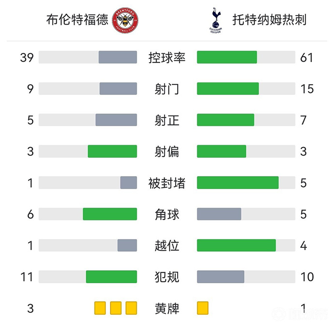 热刺2-2布伦特福德 凯恩头球建功霍伊别尔破门