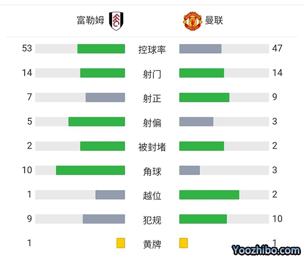 第61分钟,富勒姆扳平比分,威廉分边给左路的凯尔尼,凯尔尼下底后直接横传门前,刚刚换上的丹尼尔詹姆斯中路包抄推射破门!曼联1-1富勒姆!