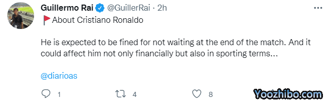 记者透露,C罗预计将因为提前离场而被曼联罚款,这不仅可能会在钱财方面影响到他,还将在竞技层面上影响到他。