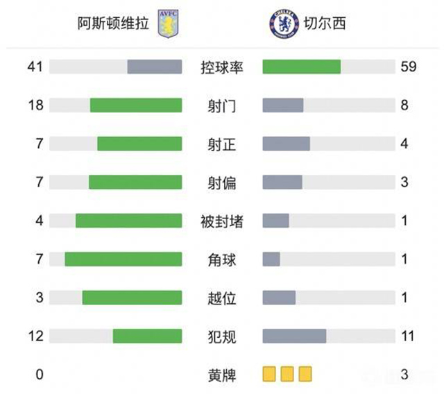 全场比赛结束,切尔西2-0击败阿斯顿维拉。