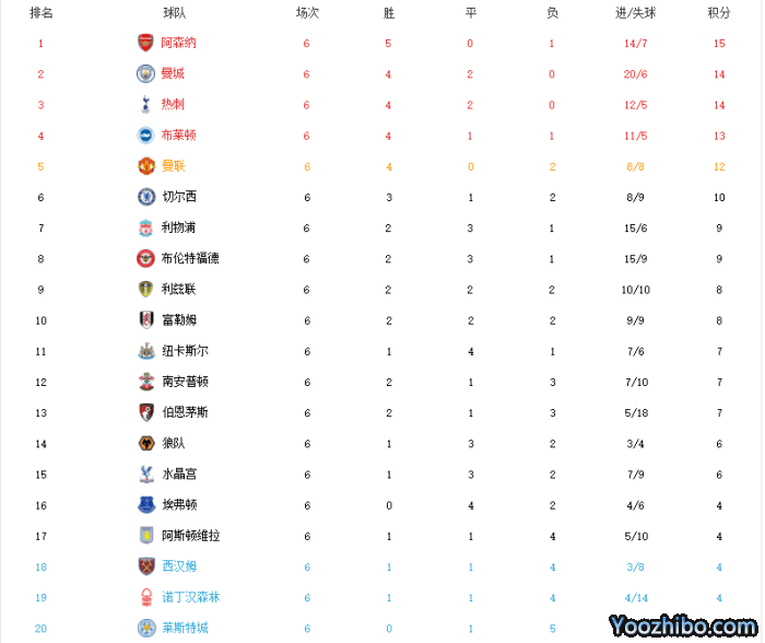 来源:24直播网09-05 12:5824直播网09月05日讯 ,英超第6轮的比赛已经全部结束争夺,本轮曼联主场3-1送阿森纳首败,红魔豪取4连胜。曼城和利物浦都战平没有拿到3分,切尔西绝杀西汉姆联,布莱顿6轮斩获13分成为最大黑马。本赛季的英超可以说大乱斗,阿森纳、热刺、曼城、利物浦、曼联和切尔西,群雄并起,冲击冠军。