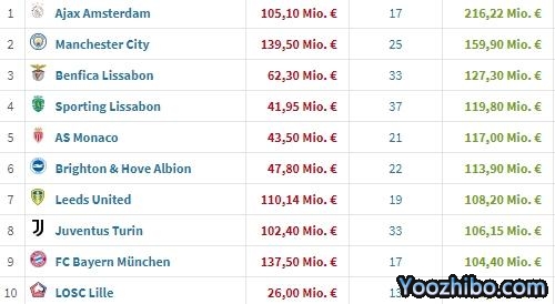 24直播网讯 今夏阿贾克斯将安东尼和利桑德罗-马丁内斯高价卖给了曼联,他们通过出售球员获得2.16亿欧元,位居首位。