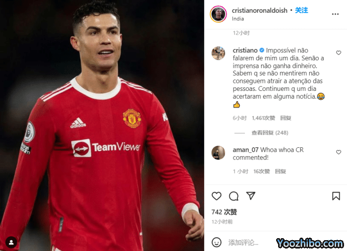 C罗在球迷号下方评论:媒体不谈论我就没钱赚