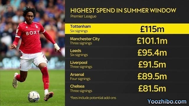 24直播网07月21日讯 热刺今夏已经引进了理查利森、朗格莱和斯彭思等球员,转会支出1.15亿英镑。曼城引进了哈兰德和菲利普斯等,支出1.011亿,位居第二。