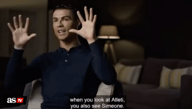 而C罗也并不介意为马竞主帅西蒙尼踢球,此前他还曾在纪录片中对阿根廷匪帅大为赞赏,盛赞他是一个“有胆识的人”。