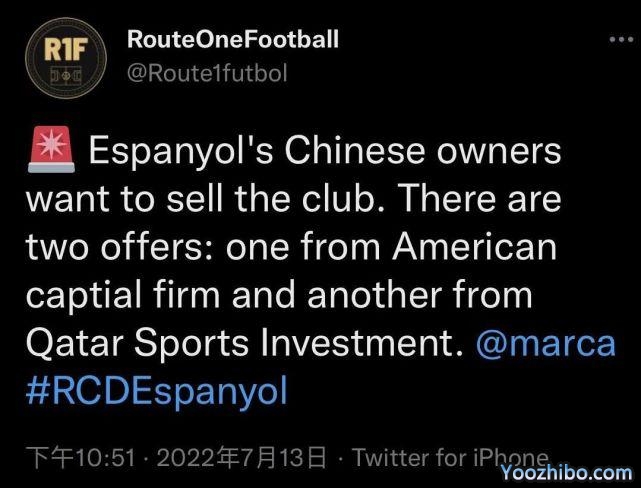 来源:24直播网07-14 16:5724直播网07月14日讯 晚,来自马卡电台Pericos Marca的消息,西甲劲旅西班牙人俱乐部老板陈雁升,正在计划出售俱乐部。目前这位中国老板已经收到了两份报价,一份来自北美的美国资本,另一份来自卡塔尔集团,后者正是法甲霸主巴黎圣日耳曼队的“金主”。