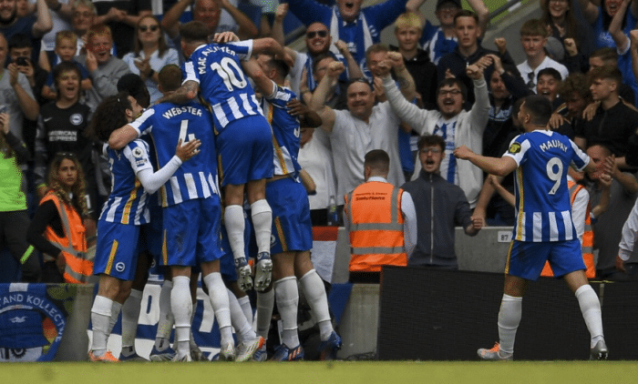 昨晚踢西汉姆联,布莱顿踢出了与2.5亿欧元身价不符的水准,直接摁着全队身价达到3.4亿的西汉姆联队狂攻。全场比赛控球率五五开,但是射门对比为悬殊的19-7,射正对比为6-2,最终顺利以3-1逆转击败西汉姆联。为布莱顿进球的是费尔特曼、格罗斯、维尔贝克,三人分别在比赛第49分钟、79分钟、90分钟完成破门,西汉姆联由安东尼奥率先打进一球,进球发生在比赛第39分钟。