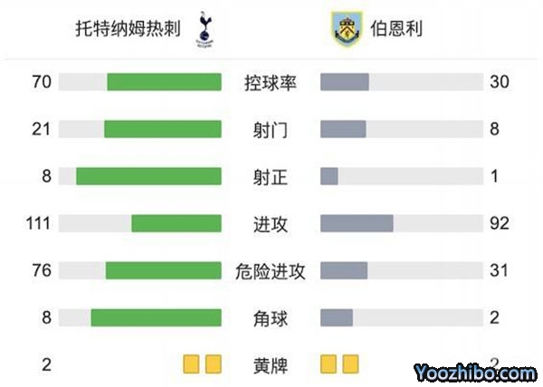 全场比赛结束,热刺1-0击败伯恩利。