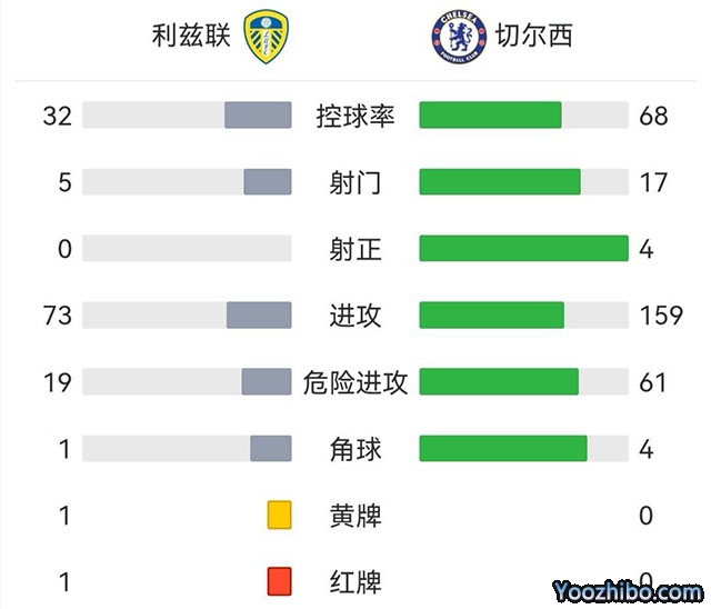 全场比赛结束,切尔西客场3-0完胜利兹联。