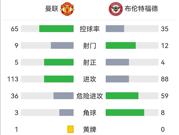 第9分钟,曼联率先打破僵局,伊兰加接后场达洛特长传带球杀入禁区右侧,下底直接传中,B费中路包抄赶到右脚推射轻松破门!曼联1-0布伦特福德!