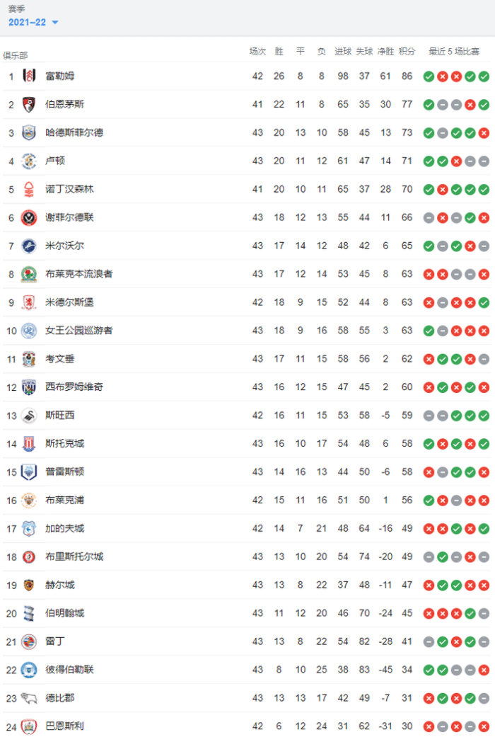 24直播网04月20日讯 本轮赢球后,富勒姆确定获得一个直接升级名额,最近五个赛季,富勒姆一直在英超和英冠之间来回游走。