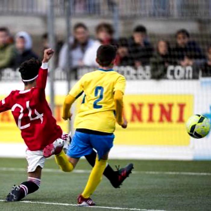 来源:24直播网04-14 22:2424直播网04月14日讯 C罗长子迷你罗已经加入曼联青训体系将近一个赛季,也为12岁以下少年队进了不少球。不过,本周他得分的画面才第一次被人们看到,在曼联少年队大胜EF吉罗内斯沙巴顶的比赛中,迷你罗接应队友的左路任意球,门前机敏抢点铲射得分,将场上比分改写为5-0。