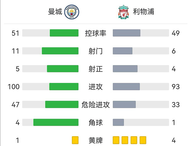 第5分钟,曼城前场断球,B席将球交给德布劳内,德布劳内带了几步起左脚远射,马蒂普上前封堵,球击中马蒂普有一个折射,阿利森扑救不及,球击中远门柱弹入网内,曼城1-0利物浦。
