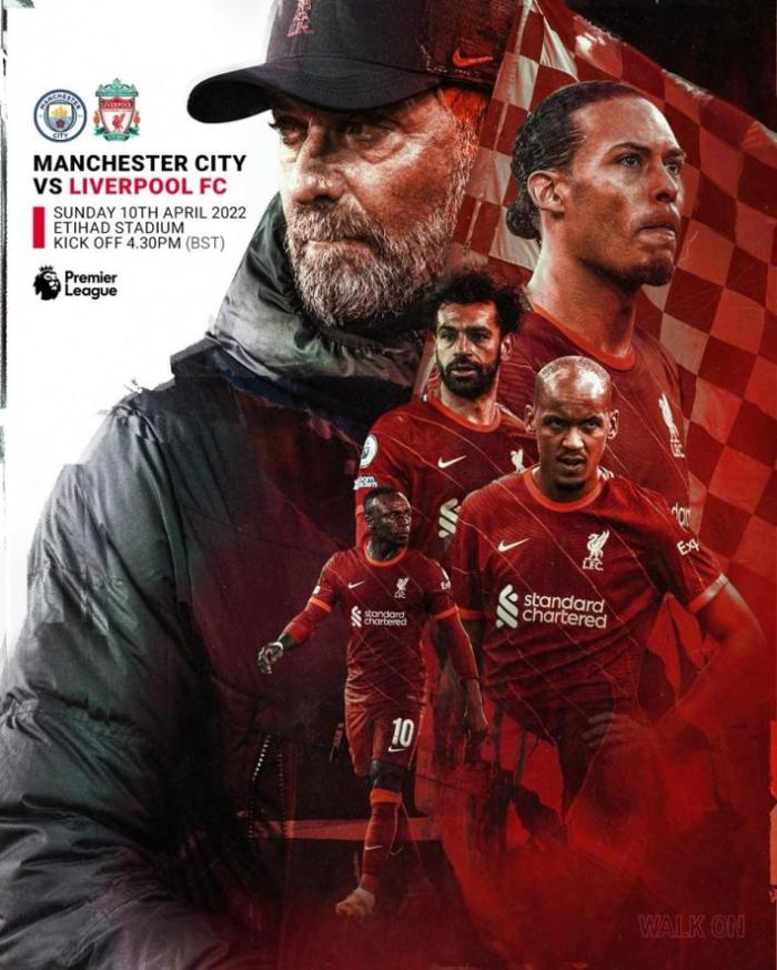 24直播网04月10日讯 今晚23:30,英超将迎来榜首大战,曼城主场战利物浦。赛前,两支球队都发布了海报。