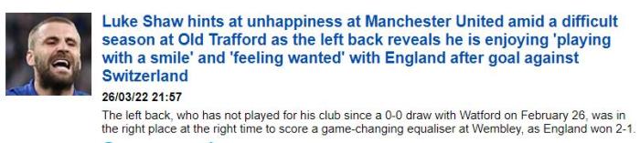 卢克·肖补充道:「足球的很大一部分是享受,当然,如果在俱乐部输球,并且踢得不好的时候,是很难享受的,我们也必须面对这一点。这个赛季(曼联)一点都不够好,很难享受。曼联有很多需要改进的地方,但现在我们在英格兰,我只重点关注这里的比赛。」