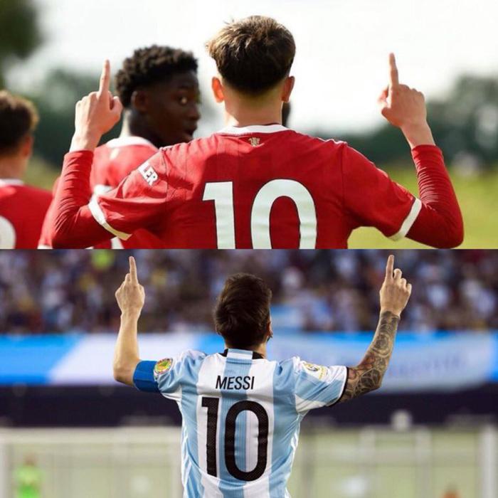 加纳乔在得知自己入选阿根廷队后,就发布过一张小时候身穿蓝白间条球衣的阿根廷球衣的照片。他的偶像虽然是C罗,但也不介意与梅西成为队友,毕竟,他在效力马竞时,都能将死敌皇马的王牌球员视为英雄。