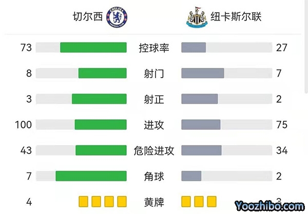 全场比赛结束,最终切尔西1-0绝杀纽卡斯尔。
