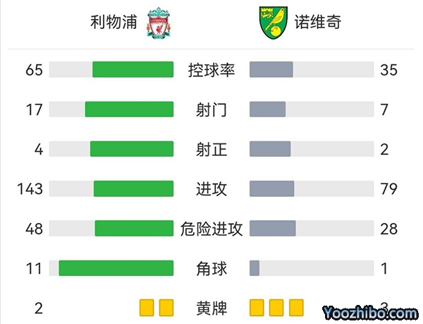 全场比赛结束,利物浦2-1诺维奇。