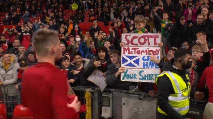 80岁大寿前夕,在老特拉福德,弗爵对曼联完胜伯恩利的结果也非常满意,赛后在看台上竖起了大拇指,笑逐颜开。值得一提的是,本场麦克托米内不仅用进球给老爵爷献礼,赛后他还将球衣送给一名高举其名字助威的小球迷,并抚摸男孩的脑袋鼓励他,对这位红魔小拥趸而言,这也是梦想成真的一天。让我们祝愿弗爵在新的一年里身体健康,所有曼联球迷心想事成,红魔成功复兴。