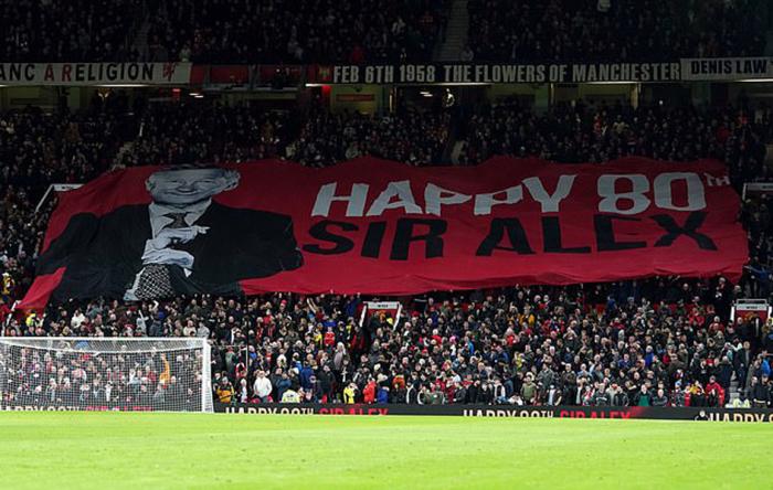 弗爵本人也亲临现场,全场球迷不仅展示海报,而且起立起身高唱生日歌、欢呼弗格森的名字,向身处董事包厢的老人家致敬。在执教曼联的26年半时间中,这位苏格兰老人带队赢得38项冠军,其中包括13次英超夺冠。