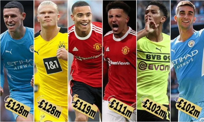 福登(曼城前锋),1.28亿英镑,英格兰,21岁,合同期至2024年6月;