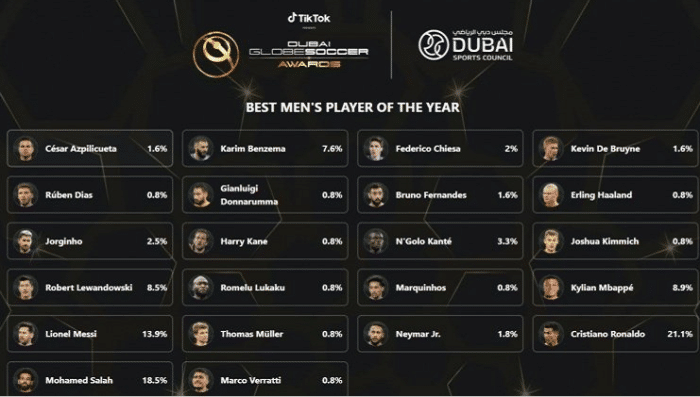 氪金模式!环球足球奖票选明码标价,梅西落后萨拉赫,C罗第一