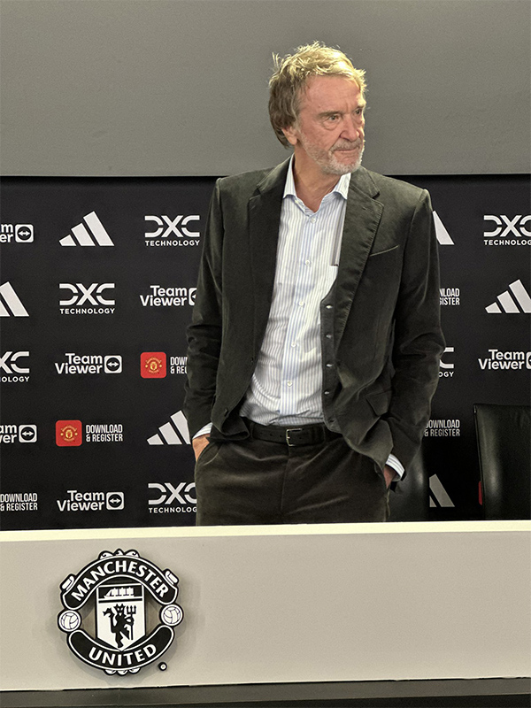 拉特克里夫在梦剧场新闻发布厅以非正式方式与英媒见面,他预计自己13.5亿英镑收购曼联25%股份的交易可以在下月上旬到中旬之间得到英超联盟的批准,届时他才能以小股东身份正式入主。