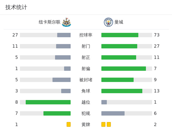 第26分钟,多库将球转移到右路,沃克传中,B席抢点脚后跟巧射破门,曼城1-0纽卡斯尔。