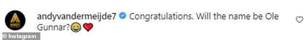 但前阿贾克斯球员、范德贝克的前辈安迪·范德梅德忍不住取笑他:「祝贺,孩子的名字会叫奥莱·贡纳尔(Ole Gunnar)吗?」