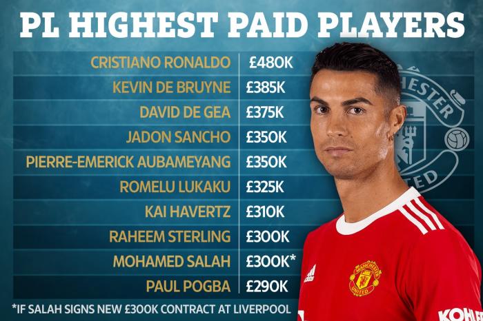 曼联球员工资2.27亿冠绝英超,领先第二名6400万!C罗一人超3队全员